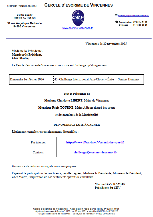 Règlements Challenge 202623ème TOURNOI DU DONJONSÉNIORS DAMESSAMEDI 31 JANVIER 202624ème TOURNOI LOUIS-CLAUDE LACAMVÉTÉRANS DAMES & HOMMESSAMEDI 31 JANVIER 202645ème CHALLENGE JEAN CLOUETSÉNIORS HOMMESDIMANCHE 1er FÉVRIER 2026ad3002026-01-14T12:43:44+01:00janvier 13th, 2026|Evénements, inscription|Partagez l'info sur vos réseaux sociaux !FacebookXLinkedInWhatsAppTumblrEmail Articles similaires