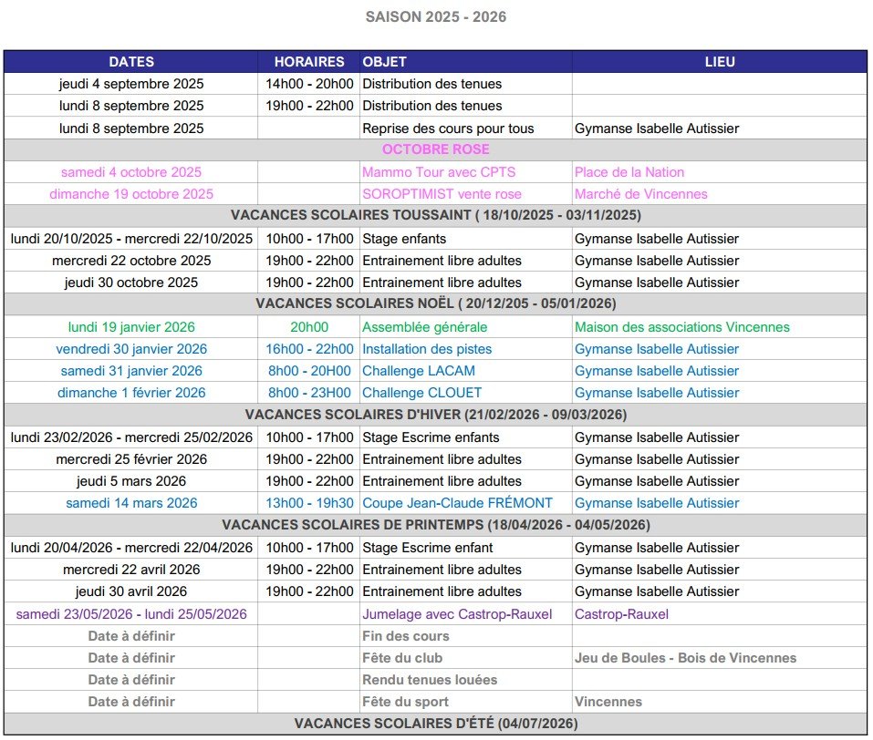 Le Cercle d’Escrime de Vincennes